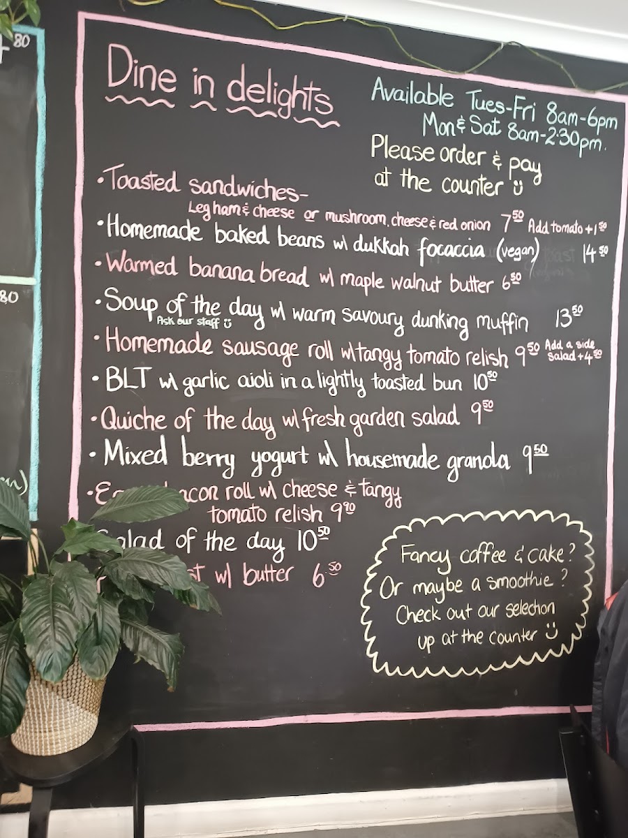 This structured menu supports a variety of dining occasions, from quick coffee and tea breaks to simple meals, either served on-site or taken home for convenience.